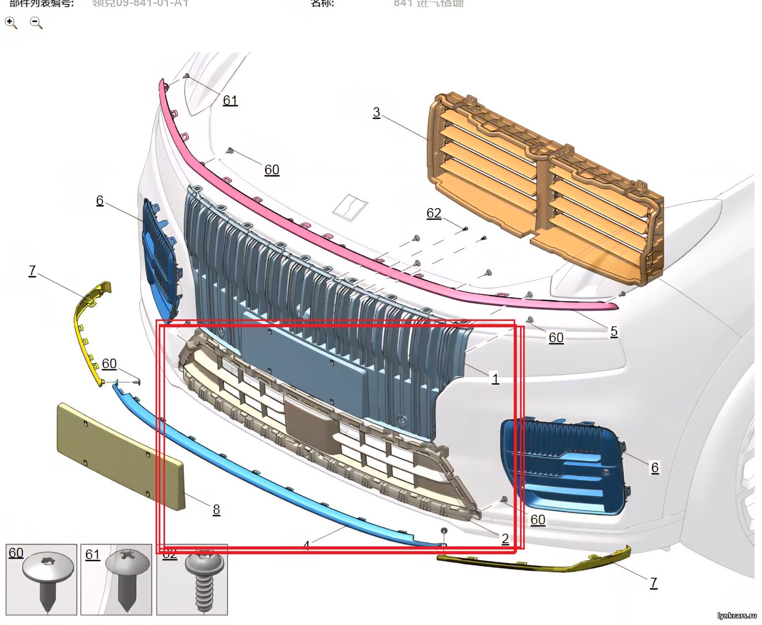 Нижняя решетка переднего бампера Lynk&Co 09 EM-P - Стоимость запчасти указана без учета расходов по доставке из Китая