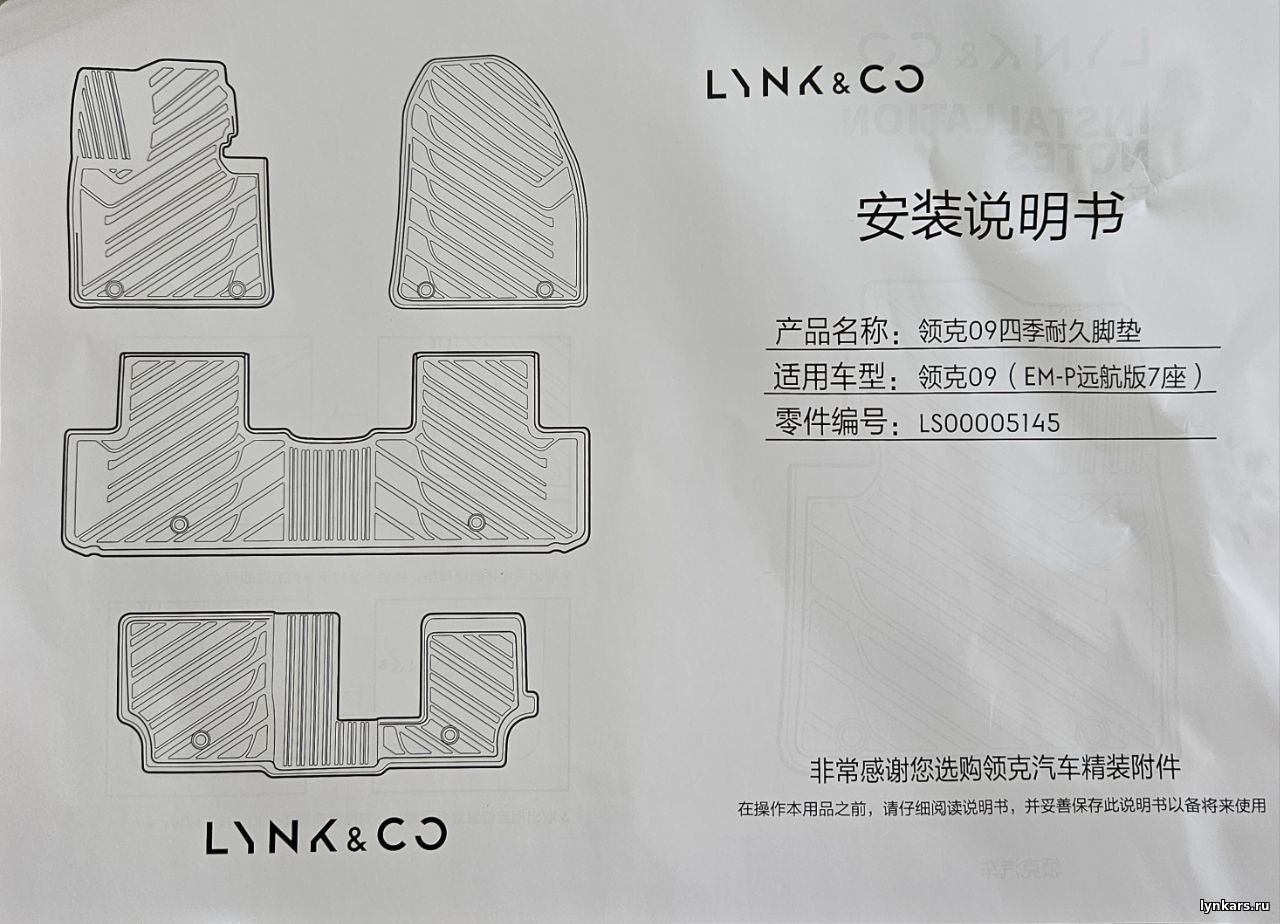 Комплект оригинальных двойных коврики в салон для автомобилей Lynk&Co 09 EM-P 7-ми местная версия